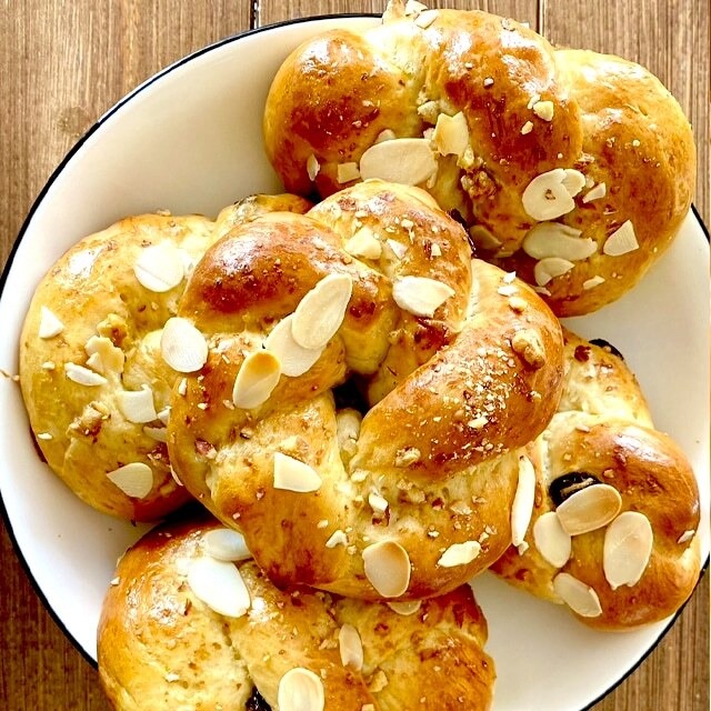 Jidáše(イダーシェ)はチェコで聖木曜日に食べられるイースターに欠かせないパンです。 聖木曜日の日の出の間にこのパンを食べると人に裏切られたり、蛇に噛まれたりすることがないと言われています。 柔らかい生地にナッツを乗せて香ばしく、ほんのり甘みがある優しい味に仕上げました。形は様々ありますがご注文時にご指定いただけませんのでご了承ください。 ※※※※オーダーの前に必ずご確認ください※※※※ ◇発送・・・ご注文から3、4日以内。送料を少しでも安くお届けする為にクロネコヤマト宅急便コンパクトにてお送りいたします。通常は常温配送ですが、冷凍、冷蔵商品と一緒にご注文の場合は同梱発送となります。 ◇サイズ・・・約10 〜 12cm (形状によって多少の誤差がありますが同じ重量で作っています。) ◇お召し上がり方・・・そのままかジャム、バターを付けてお召し上がりください。 ◇賞味期限・・・到着後2日程度。保存料を使用していないため非常に短いです。 ◇保存方法・・・乾燥いたしますと食べにくくなりますので乾燥を防ぐように保存して頂き、なるべく早めにお召し上がりください。 ◇アレルギー情報 ・・・特定原材料のうち、【小麦・乳成分・卵・アーモンド】が含まれております。 ナッツ類の中ではアーモンド・くるみなどを使用しております。 同じキッチンでその他のナッツ類を材料として使用しておりますので、上記にかかわらず重いアレルギーのある方はご注文をお控えください。 ◇ご注文後のキャンセル、返品、交換は原則受け付けておりません。 ◇配送日時指定について・・・備考欄に明記下さい。希望のない場合、最短納期でお届けいたします。時間指定は以下からお選び頂けます [午前中、14−16時、16−18時、18−20時、19−21時] 配達状況によって希望時間にそえない場合もございますので予めご承知おき下さい。