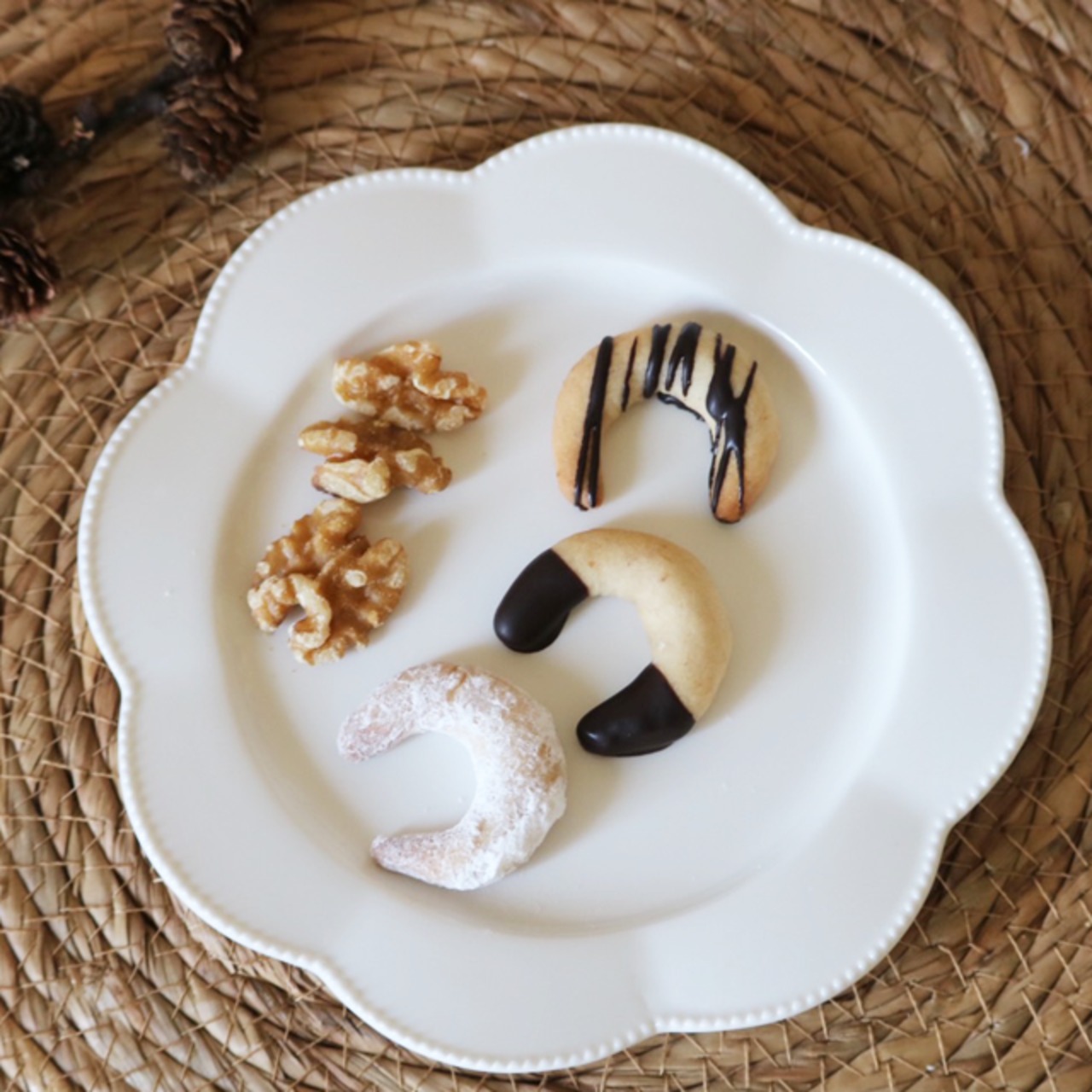 バニラの良い香りにほんのりクルミを感じる柔らかな味。チョコをトッピングして更に美味しく、でも甘すぎない人気のクッキーです。